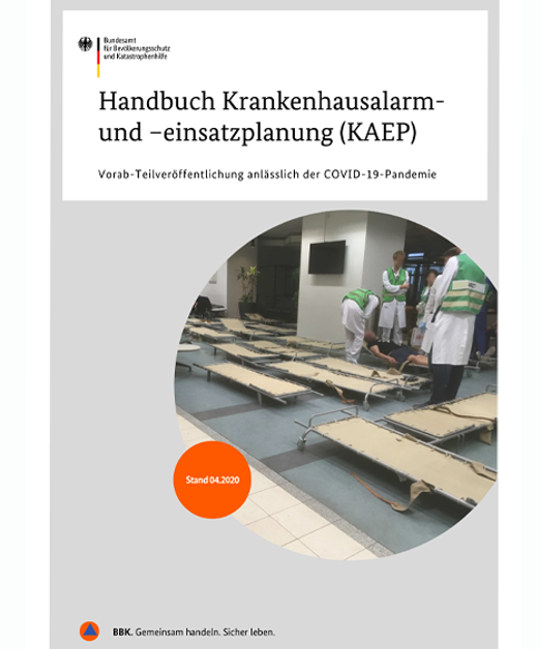 Das Bundesamt für Bevölkerungsschutz und Katastrophenhilfe (BKK) hatte im April 2020 Auszüge aus dem Handbuch Krankenhausalarm- und -einsatzplanung (KAEP) vorab veröffentlicht, um Krankenhäuser bei ihren Vorplanungen und Maßnahmen in Bezug auf die COVID-19-Pandemie zu unterstützen. Pünktlich zum Jahresende ist die Publikation finalisiert worden und steht nun auf der Website des BKK kostenfrei zum Download bereit.