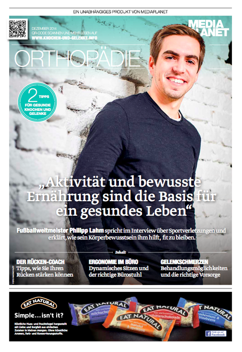 Weitere Themen der Sonderbeilage sind unter anderem der Rücken-Coach, Ergonomie im Büro und Gelenkschmerzen. Zudem spricht Fußballweltmeister Philipp Lahm im Interview über Sportverletzungen und erklärt, wie sein Körperbewusstsein ihm hilft, fit zu bleiben.