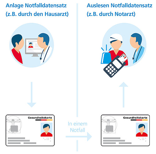 Mit der ab 2018 gesetzlich vorgeschriebenen Einführung des Notfalldaten-Managements (NFDM) kann der Hausarzt künftig auf Wunsch des Versicherten den Notfalldatensatz sowie den Datensatz „Persönliche Erklärungen“ (Angaben zu einer vorhandenen Patientenverfügung, Organspende-Ausweis, Vorsorgevollmacht) auf der elektronischen Gesundheitskarte speichern. Der Patient entscheidet auf freiwilliger Basis, ob er einen NFD für sich anlegen lässt. Im Notfall können Ärzte oder Notfallsanitäter somit die lebensrettenden Informationen einlesen.