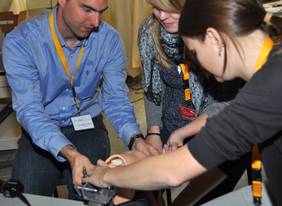 Ebenfalls sehr anschaulich dargestellt wurde die Tätigkeit im niedergelassenen Bereich. Daneben gab es viele Möglichkeiten der praktischen Übung, sei es die Implantation von Endoprothesen, die Arthroskopie oder die Sonografie. Weitere Themenschwerpunkte, die äußerst lebhaft diskutiert wurden, waren die Karriereplanung sowie die Vereinbarkeit von Familie und Beruf. Hier waren vor allem die KollegInnen aus den Kliniken bemüht, aus Ihrem praktischen Erleben der Weiterbildung und dem Klinikalltag manche „Mähr“ zu Recht zu rücken.
