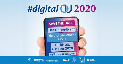 Vor einigen Wochen erfolgte die Absage des DKOU 2020 aufgrund der aktuellen Pandemie-Einschränkungen. Vom 19. bis zum 23. Oktober 2020 bieten die Deutsche Gesellschaft für Orthopädie und Unfallchirurgie und der Berufsverband für Orthopädie und Unfallchirurgie unter dem Namen #digitalOU2020 ein virtuelles Fortbildungsformat an. Täglich von 17.00-21.00 Uhr wird es das Beste aus O und U live im Internet und über die O&U-Events-App geben.