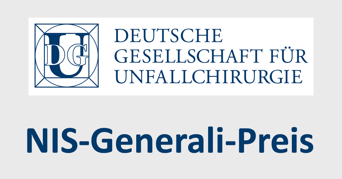 Die Sektion Notfallmedizin, Intensivmedizin und Schwerverletztenversorgung (NIS) der Deutschen Gesellschaft für Unfallchirurgie (DGU) lobt auch in diesem Jahr den NIS-Generali-Preis für die Verbesserung der Schwerverletztenversorgung aus. Der Preis ist mit 1.000 Euro dotiert und wird von der Generali Deutschland AG gestiftet. Mit der Auszeichnung möchte die Sektion herausragende wissenschaftliche Untersuchungen und konkrete Projekte fördern, die einer Verbesserung der Qualität der Versorgung schwerverletzter Patienten dienen. Die Bewerbungen können bis zum 30. Mai 2021 eingereicht werden.