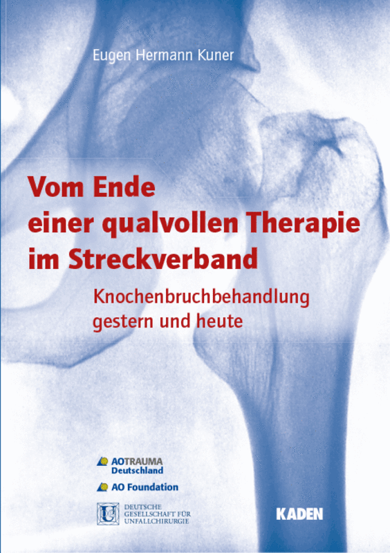 Aus der Verlagsankündigung: Um eine knöcherne Heilung zu erzielen, musste der Verletzte mit einem Schenkelhalsbruch über Wochen oder Monate hinweg auf dem Rücken in einem Streckverband im Krankenhaus liegen. Die qualvolle Behandlung war oft mit schweren, gar tödlichen Komplikationen verbunden. Eine knöcherne Bruchheilung war unter diesen Bedingungen nicht sicher.