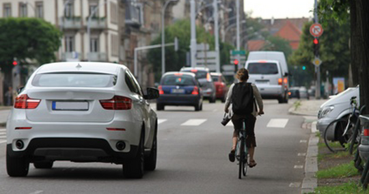 Unfälle beim Abbiegen vermeiden durch Blickkontakt zwischen Fahrradfahrern und Autofahrern