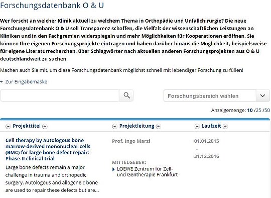 Wer forscht an welcher Klinik aktuell zu welchem Thema in Orthopädie und Unfallchirurgie? Um hier Transparenz zu schaffen, die Vielfalt der wissenschaftlichen Leistungen ...