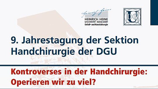 Die 9. Jahrestagung der Sektion Handchirurgie der Deutschen Gesellschaft für Unfallchirurgie (DGU) steht unter dem Motto „Kontroverses in der Handchirurgie: Operieren wir ...