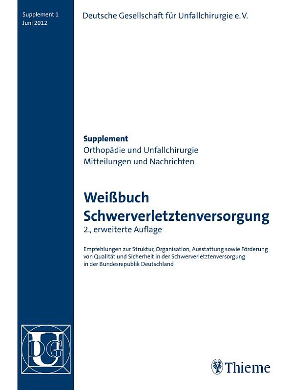 Die Empfehlungen des 2006 erstmals erschienenen Weißbuches zur Versorgung Schwerverletzter wurden aktualisiert. Neben den Maßnahmen zur Verbesserung der Überlebenschancen beinhaltet das Weißbuch nun auch Vorgaben zur Optimierung der langfristigen und besseren Lebensqualität für Menschen nach einem Unfall. Seit Einführung des Weißbuches und der bundesweiten Umsetzung dieser Empfehlungen im Projekt TraumaNetzwerk DGU® zeichnet sich in Deutschland eine deutliche Verbesserung der klinischen Infrastruktur und der Prozessqualität bei der Versorgung von schwerverletzten Patienten ab.
