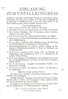 Einladungsblatt zum Unfallkongress am 23. 9.1922 in Leipzig und zur Gründung einer „Deutschen Gesellschaft für Unfallheilkunde und Versicherungsmedizin“