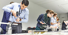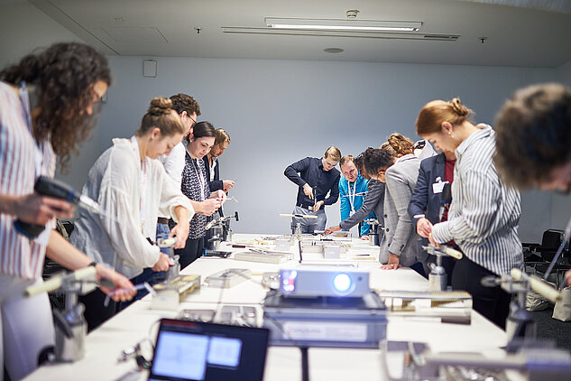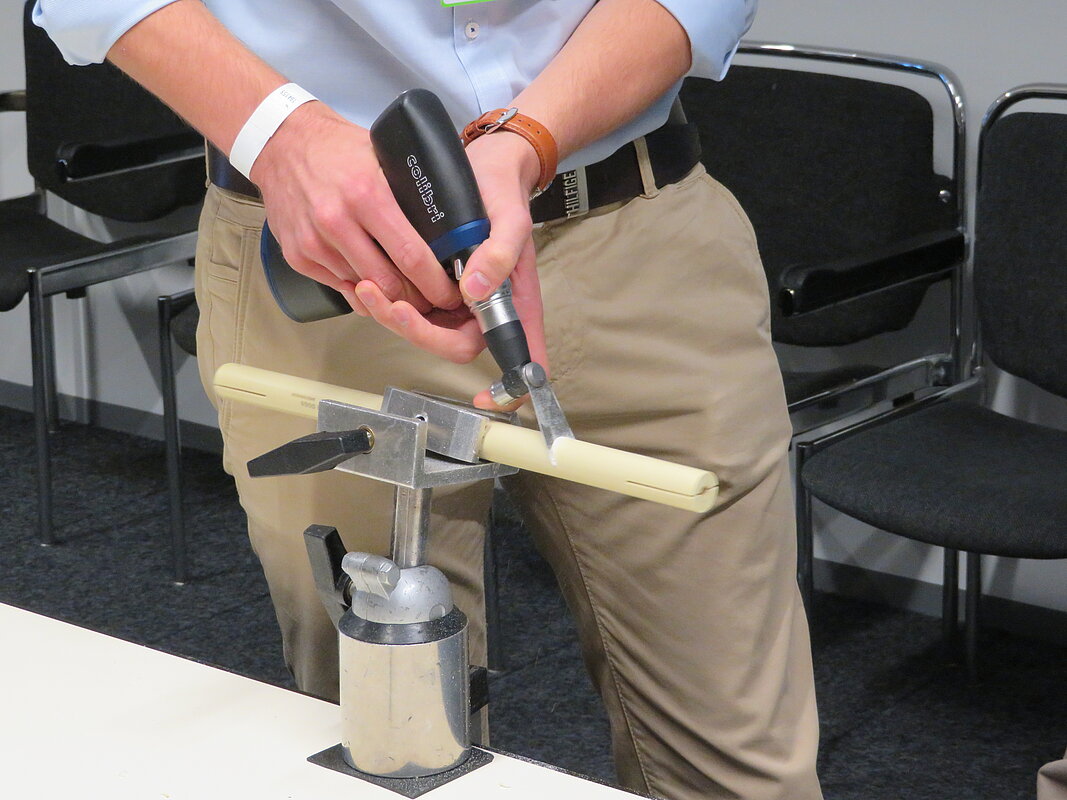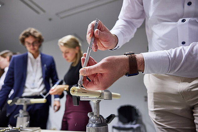 Oft sind es persönliche Vorbilder, die einem den beruflichen Weg ebnen, leitete Kongresspräsident Prof. Dr. Paul A. Grützner den Tag der Studierenden ein. Auch er wurde in jungen Jahren von seinem Chef, heute 80 Jahre und unermüdlicher Kongressteilnehmer, inspiriert. Der Umgang mit seinen Mitarbeitern wie auch die Art der Patientenführung habe ihn damals sehr beeindruckt. 100 Studierende hörten seinen Worten am frühen Mittwochmorgen aufmerksam zu, gespannt, was sie erwartet. Ein erkenntnis- und lehrreicher Tag soll es werden, versprach Grützner. Unter dem Kongressmotto „Wissen braucht Werte“ standen den einzelnen Gruppen gemeinsame Tutoren- und Mentorengespräche, wissenschaftliche Sitzungen sowie praktische Übungen im Osteosynthesekurs in Aussicht.