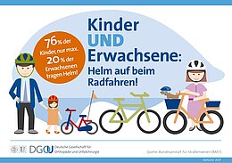 Während die meisten Eltern ihrem Kind einen Helm aufsetzen, tragen sie selbst oftmals keinen. Orthopäden und Unfallchirurgen empfehlen: Helm auf beim Fahrradfahren – in jedem Alter. Im Falle eines Sturzes kann ein Helm dazu beitragen, eine schwere Kopfverletzung zu verhindern. „Wirken Erwachsene nicht als Vorbild, sinkt die Wahrscheinlichkeit, dass Kinder später im Jugend- und Erwachsenenalter weiterhin einen Helm tragen“, sagt Prof. Dr. Reinhard Hoffmann (ehemaliger DGOU-Generalsekretär). Dass Eltern ihrem Kind einen Helm aufsetzen und auch selbst zum Helm greifen sollten, verdeutlicht die DGOU mit einer Grafik.