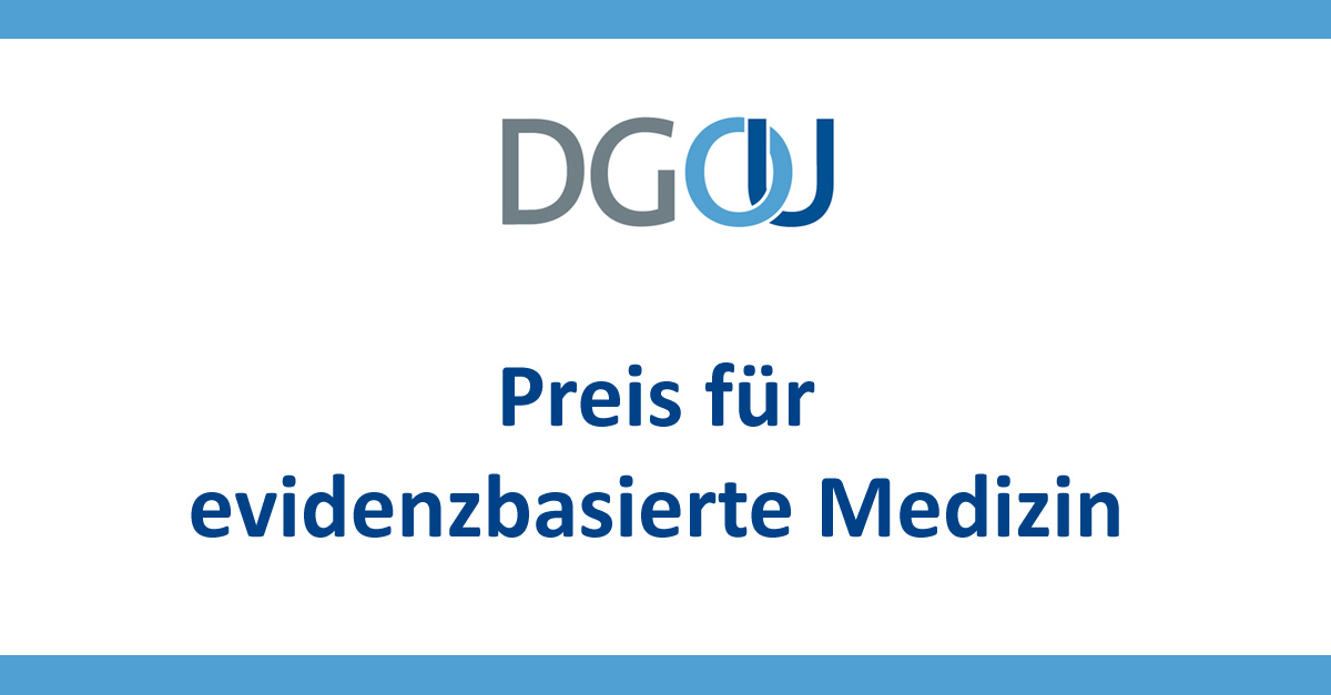 Mit dem Preis für evidenzbasierte Medizin fördert die Deutsche Gesellschaft für Orthopädie und Unfallchirurgie (DGOU) herausragende wissenschaftliche Arbeiten, die sich mit diagnostischen, anwendungstechnischen oder klinischen Studien auf dem Gebiet der evidenzbasierten Medizin befassen.