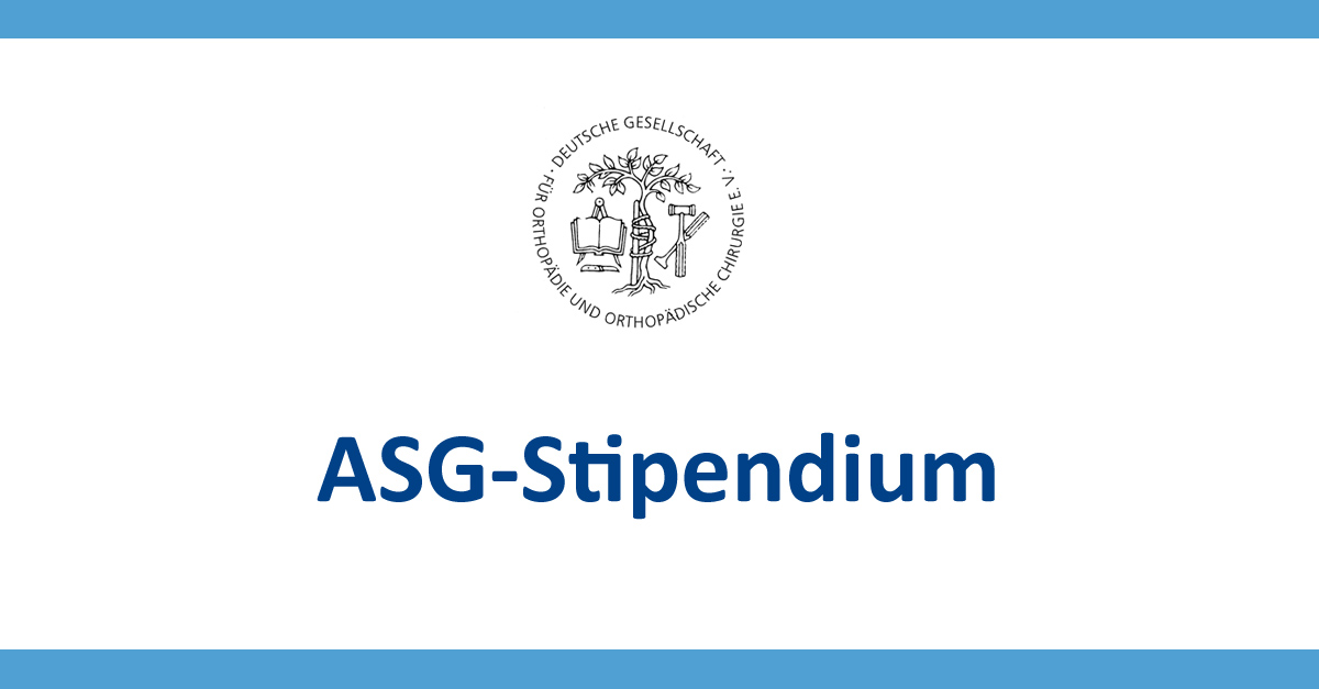 Das ASG-Stipendium (Austrian-Swiss-German Fellowship) ist eine der höchsten Auszeichnungen der deutschsprachigen orthopädischen Fachgesellschaften. Vier Stipendiaten (ein Schweizer, ein Österreicher und zwei Deutsche) reisen im Sommer für sechs Wochen durch die englischsprachigen Länder England, Kanada sowie den USA und besuchen anglo-amerikanische orthopädische Eliteeinrichtungen. Sie repräsentieren die deutschsprachige Orthopädie, müssen die englische Sprache beherrschen und sollten wissenschaftlich und klinisch herausragend sein. Erwartet wird ferner soziale Kompetenz und Respekt vor den Gegebenheiten der anglo-amerikanischen Gastländer. Die deutschen Stipendiaten werden mit bis zu 8.000 Euro pro Person unterstützt.