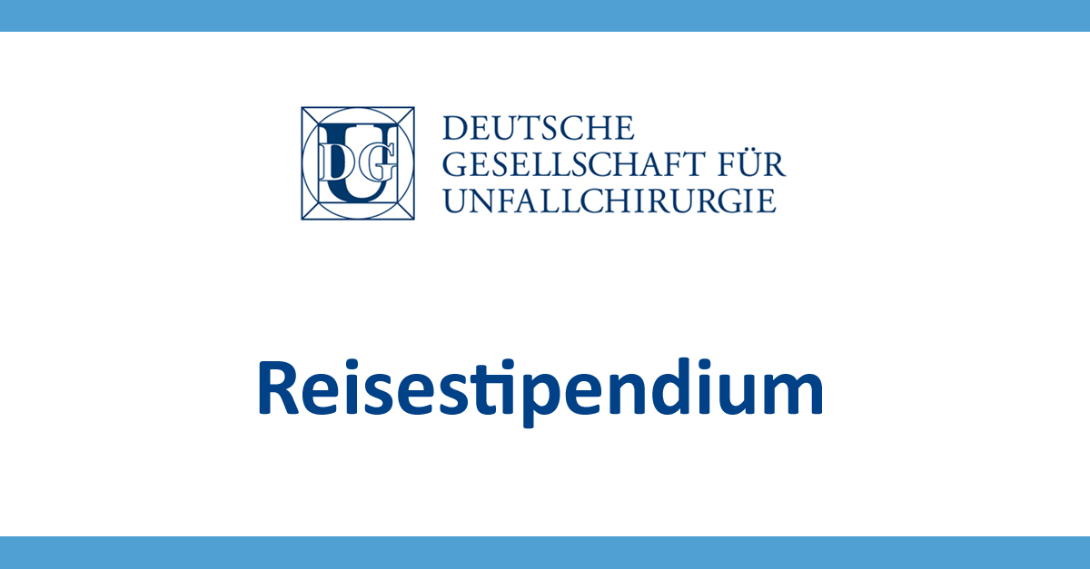 Das Reisestipendium der Deutschen Gesellschaft für Unfallchirurgie (DGU) soll den wissenschaftlichen Nachwuchs beim Besuch einer klinisch oder experimentell bedeutenden ausländischen Einrichtung unterstützen. Das Stipendium ist mit 5.000 Euro dotiert und kann geteilt werden. Es wird auf dem Deutschen Kongress für Orthopädie und Unfallchirurgie (DKOU) verliehen.
