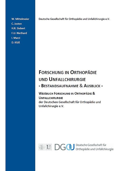 Das von der Deutschen Gesellschaft für Orthopädie und Unfallchirurgie (DGOU) herausgegebene „Weißbuch“ versteht sich als eine Zusammenfassung der Forschung in Orthopädie und Unfallchirurgie in Deutschland. Die zahlreichen Experten verdeutlichen die Vielfalt des Fachgebiets sowie die Potenziale in der Grundlagenforschung, der translationalen und klinischen Forschung bis hin zur Versorgungsforschung.